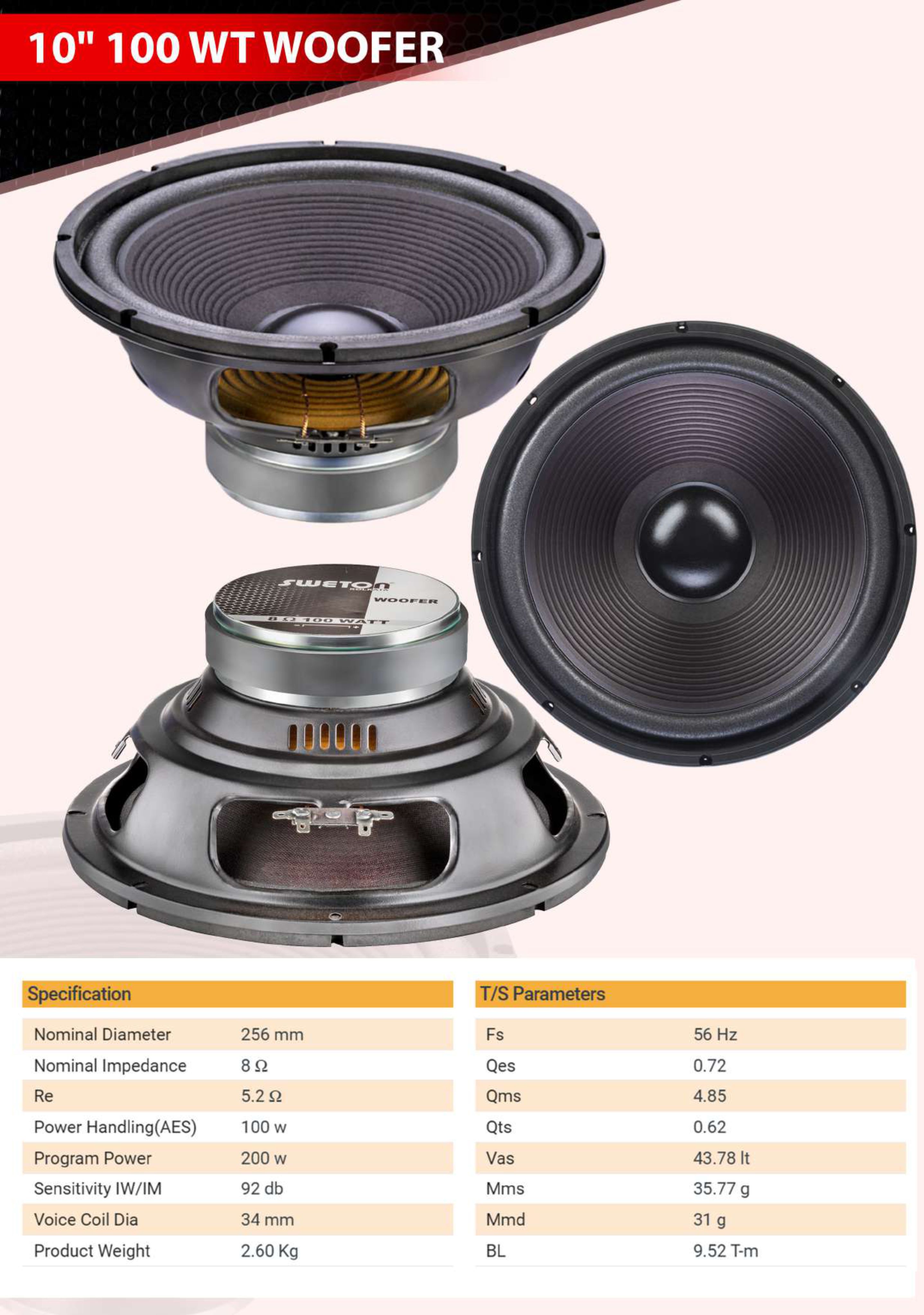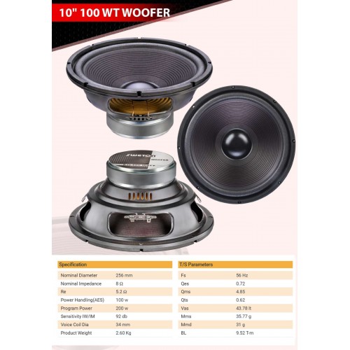10" WOOFER 100W - SWETON