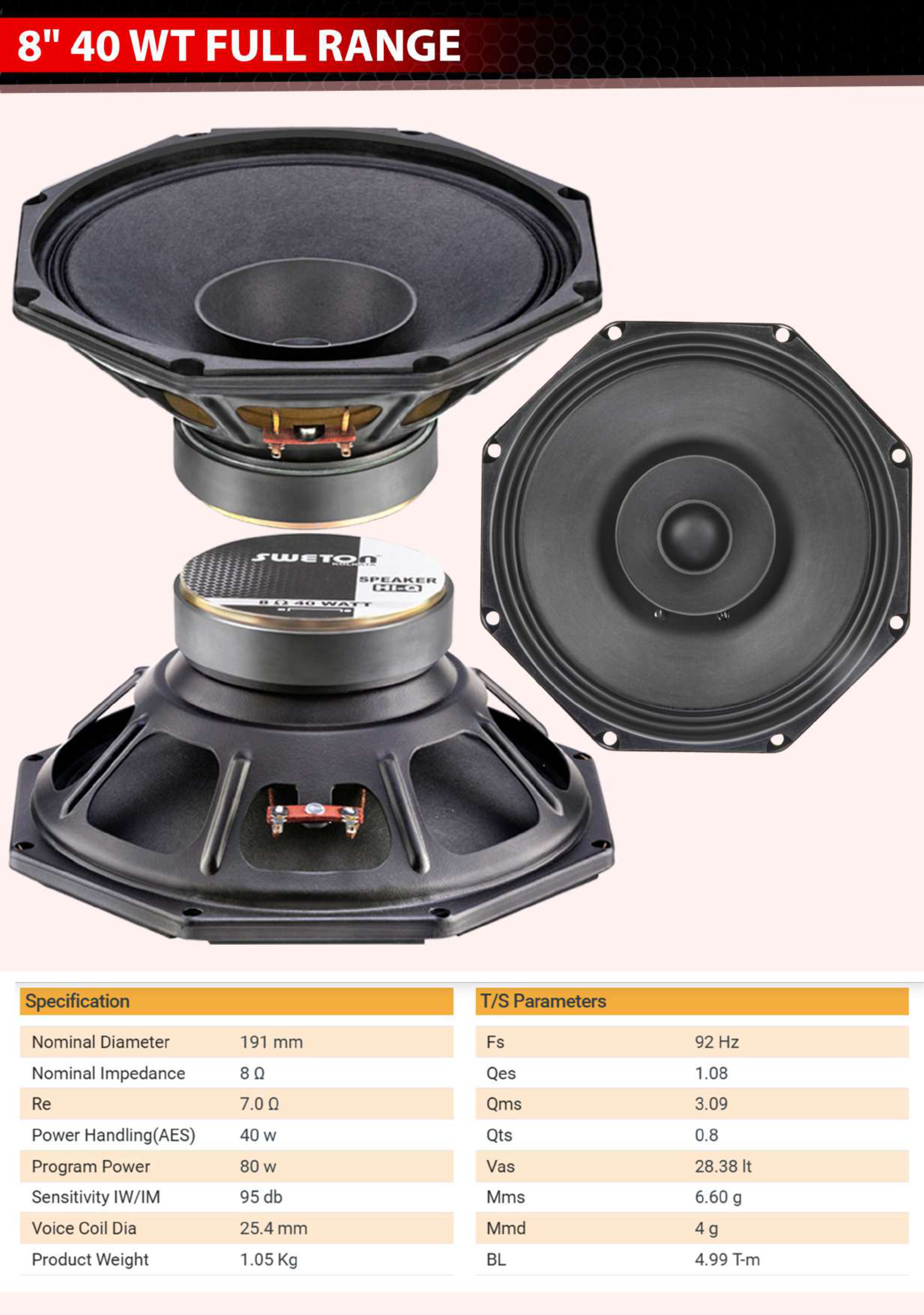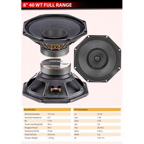 8"FULLRANGE SPEAKER 40W - SWETON