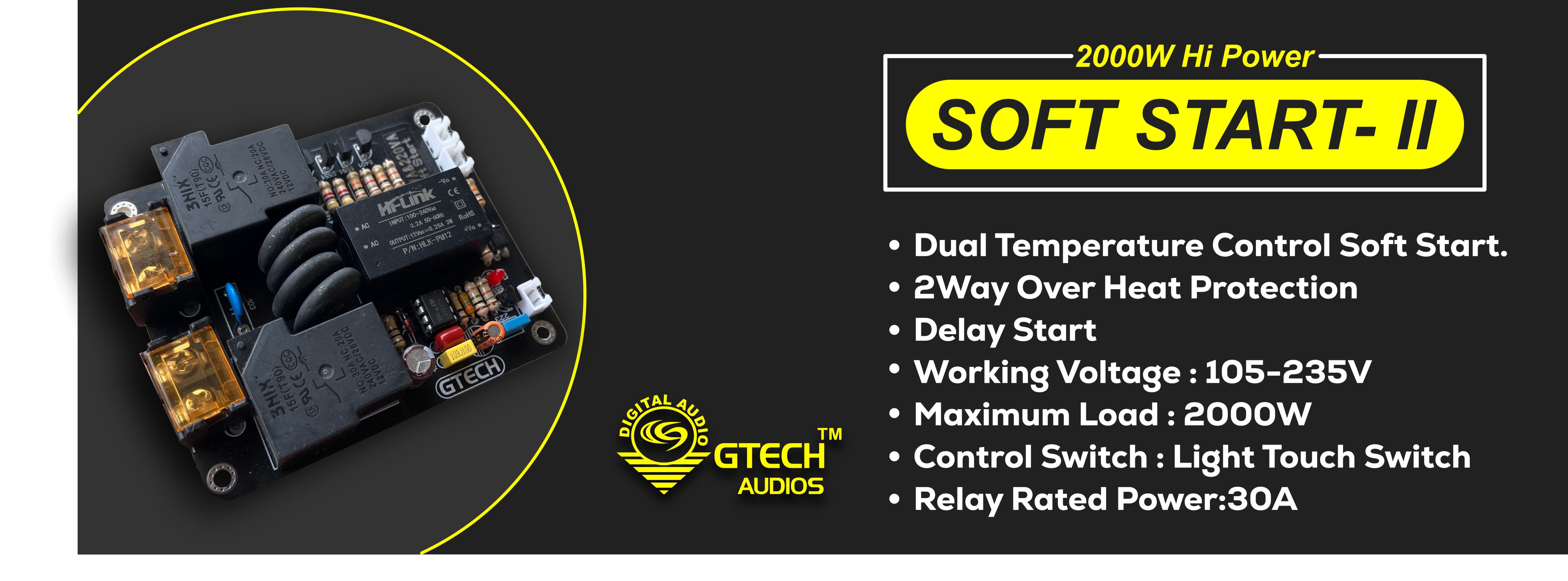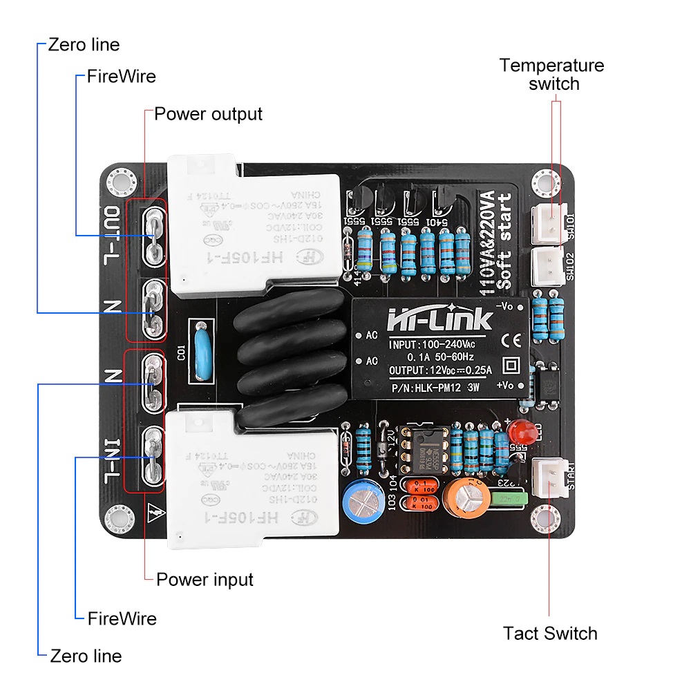 It is suitable for high-power amplifier and post-stage power supply as delay soft start board to avoid high current impact at the moment of booting and better protect your machine.